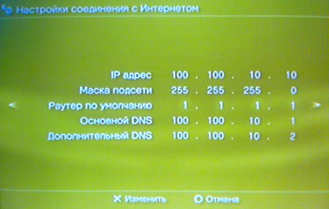 Здесь, самое главное, вам нужно в точности указать "Основной шлюз", как вы выставили IP на PlayStation®3 - 100.100.10.10!!!