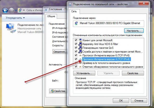 5. При нажатии на кнопку "Свойства", открывается окно свойств этого адаптера, где вам нужно выбрать "Протокол интернета версии 4 (TCP/IPv4)":